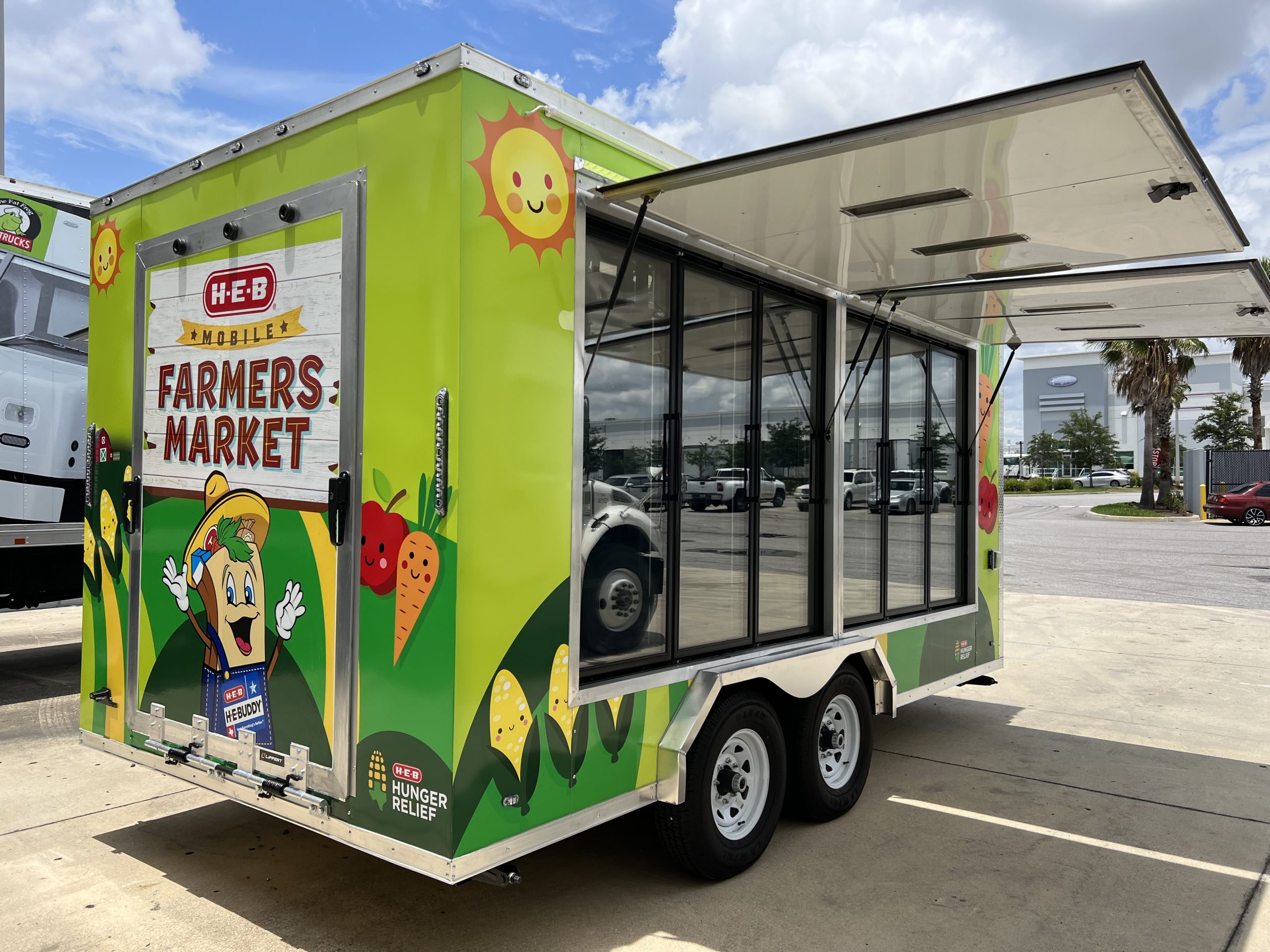 - Concession-style metal doors to ensure protective transport and awning for shopping